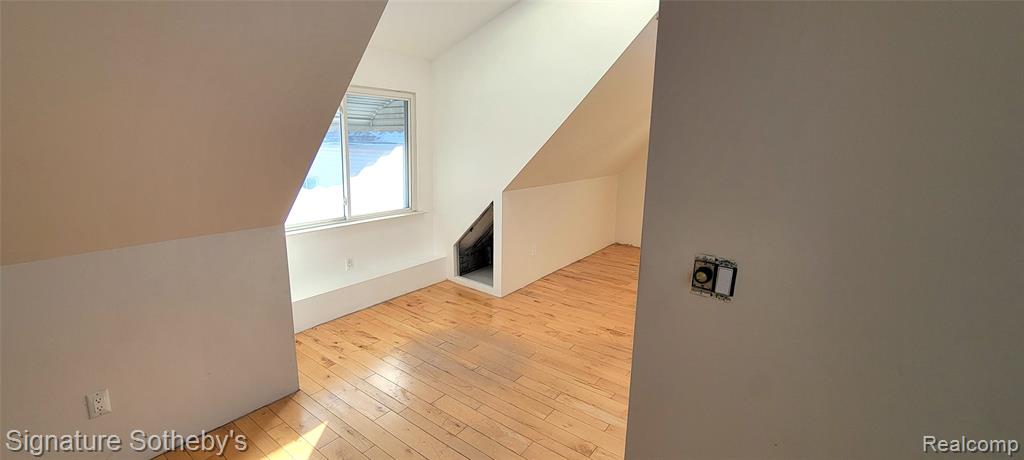 This bungalow is located a short walk from Hamtramck's nicest restaurants, shopping, and Groceries. Home sits on 45 feet of frontage, a prior home was located at front of this lot, likely allowing for a rebuild, which could then have a 2-3 unit income possibility. Perfect for parents, in-law guest house or live in the existing house and have an urban farm. The upper level was architect designed, and open with skylights and has sitting area or office space. |